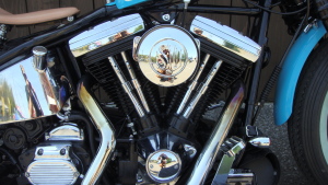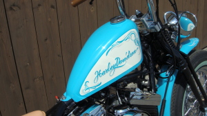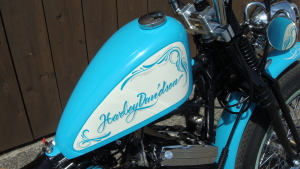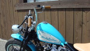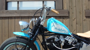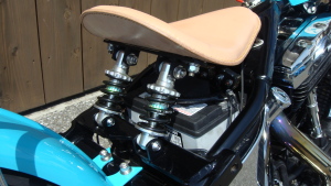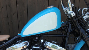 ターコイズブルーに染め上げた、鮮やかな外装